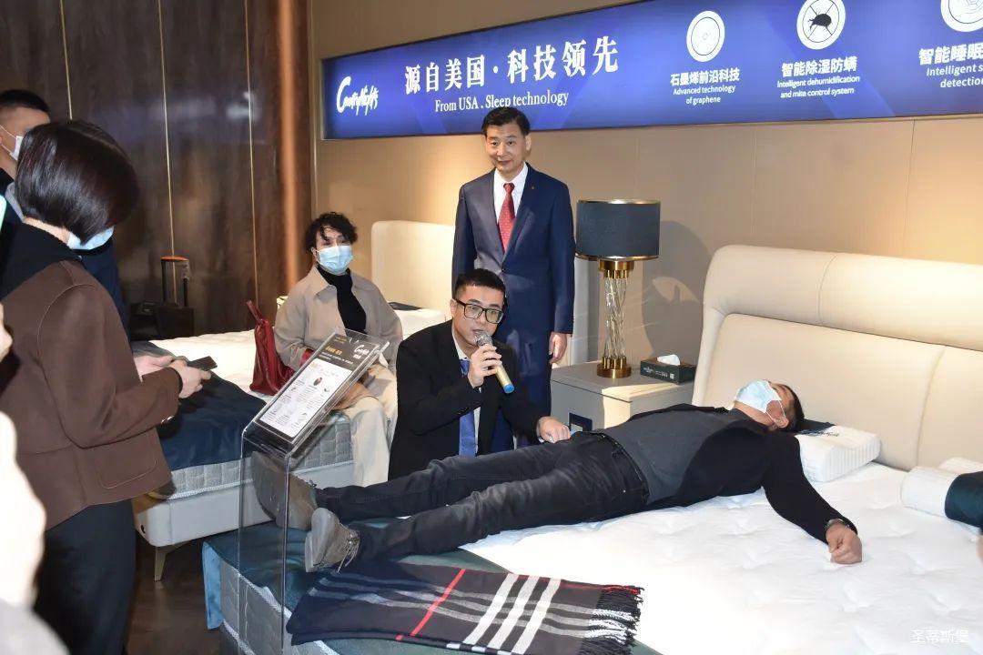 12月25日上午,按照发布会流程安排,参与发布会的嘉宾先到名家居世博园【梦凯莎】旗舰店进行了参观。上午9:45分,经销商嘉宾们陆续来到名家居世博园2楼——美国梦凯莎的展厅里,星空XK·(中国)体育集团营销总经理陈玉伟先生带领梦凯莎杨讲师团队为嘉宾们讲解【梦凯莎床垫】新品系列的10种睡感体验及材质工艺,让嘉宾们从工艺特点,科技睡感上,实时体验【梦凯莎床垫】的独有特色。“一张好床垫,睡出好健康”,“梦凯莎”品牌以其卓尔不群的产品优势和为专为国人打造健康舒适睡眠的品牌理念赢得了在场经销商的一致好评。