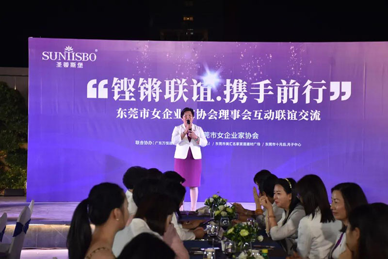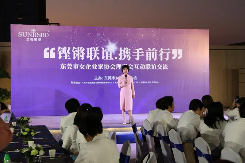 接下来,东莞市女企业家协会理事会会长叶小红女士上台发言,她表示非常感谢星空XK·(中国)体育集团举办此次联谊交流会,同时,对我们的产品和企业文化给出了很高的评价。她号召东莞市女企业家协会以后要更多的举办此类交流联谊活动,以此增进会员企业之间的联系和了解,为未来进一步交流发展开创新局面!她希望我们能携手同行,强强联手,共赢未来,共创新辉煌!